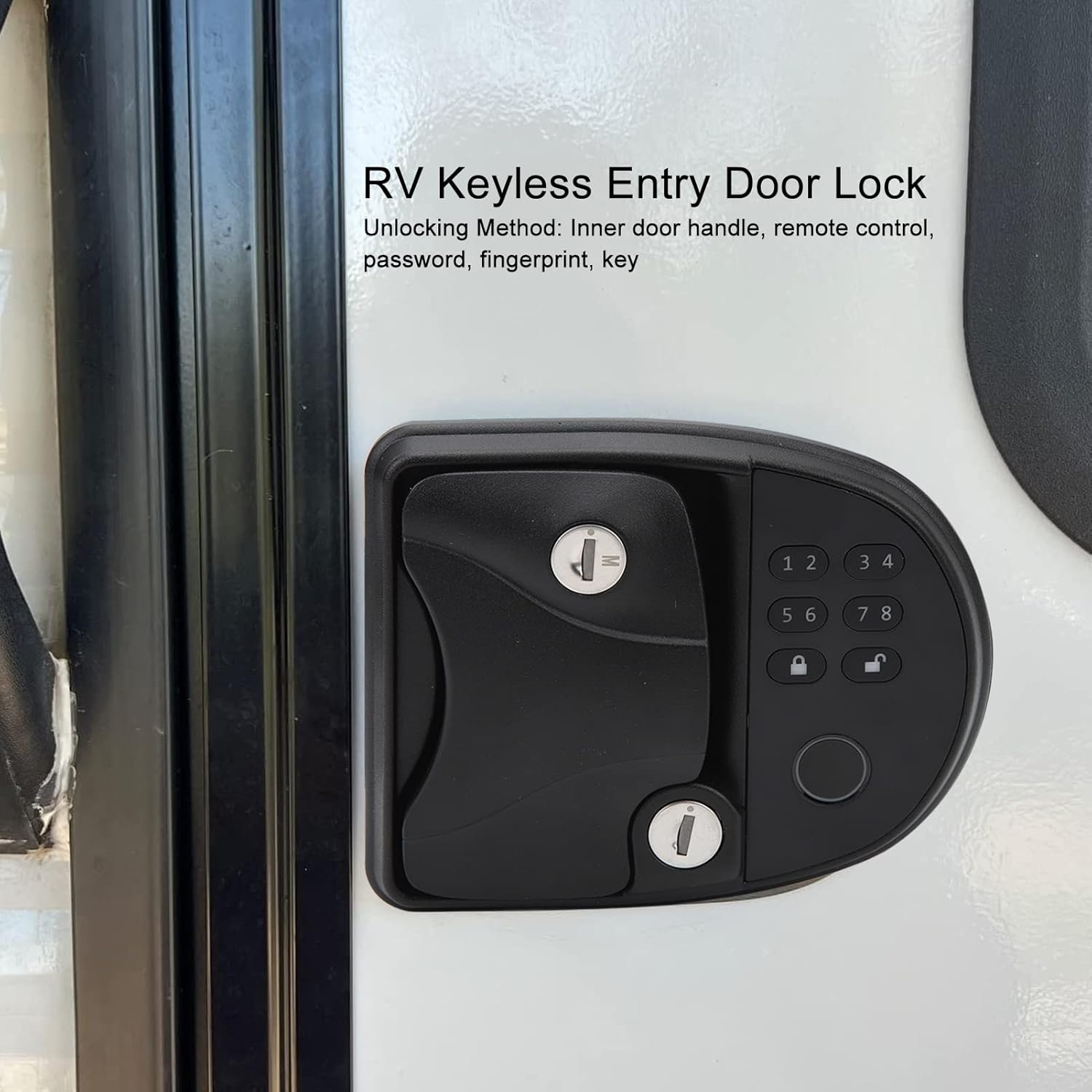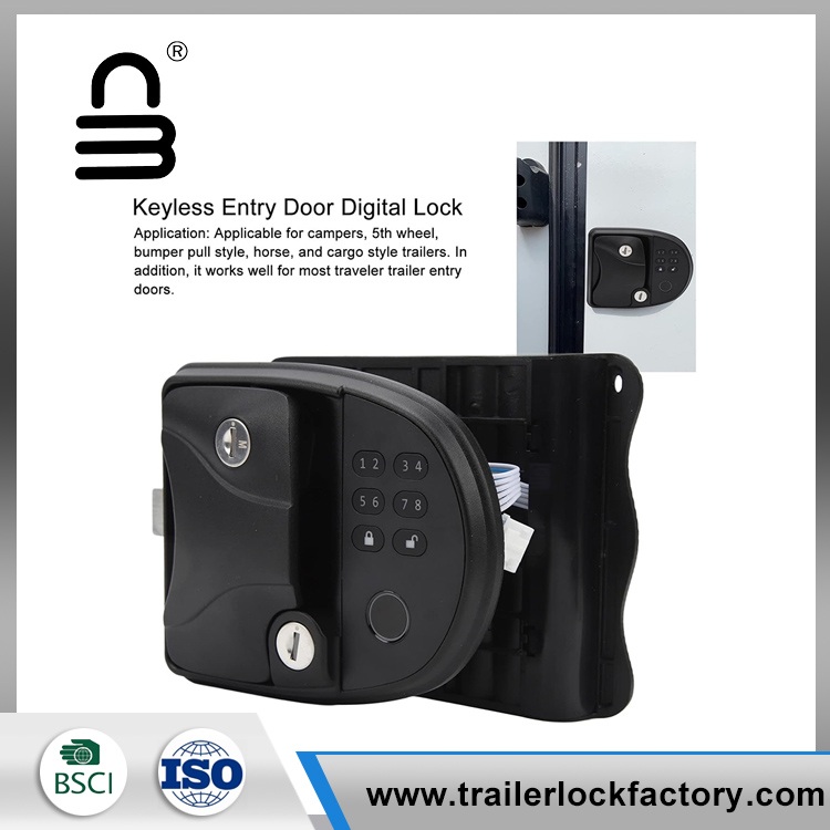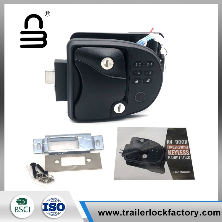Fingerprint RV Door Lock har integrert passordtastatur) Integrert tastatur er designet for å velge mellom over 1 million rullekoder (inkluderer nøkkelfritt håndtak, fingeravtrykklås og mekanisk nøkkel) aldri bekymre deg for å glemme eller miste nøkler) og fjernkontroll