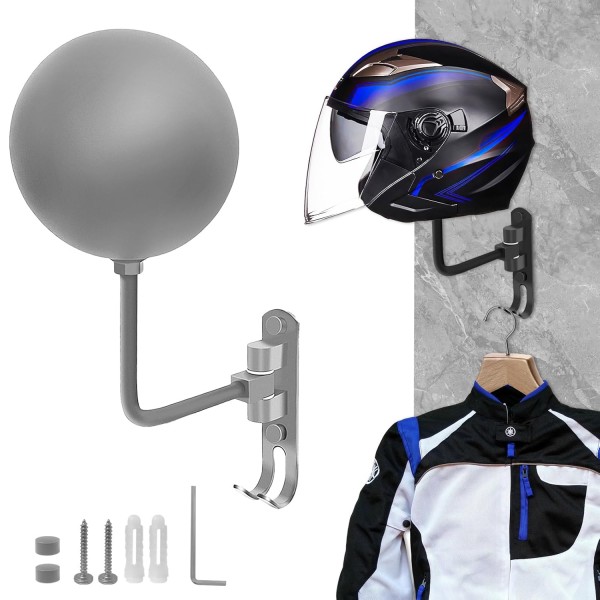 180° roterende design - YOUHENG hjelmholderen kan roteres 180° for å justere riktig posisjon etter behov. Du kan justere forskjellige vinkler for å vise hjelmen din, og når den ikke er i bruk, kan den svinges mot veggen for oppbevaring, slik at du unngår problemer med kroker.