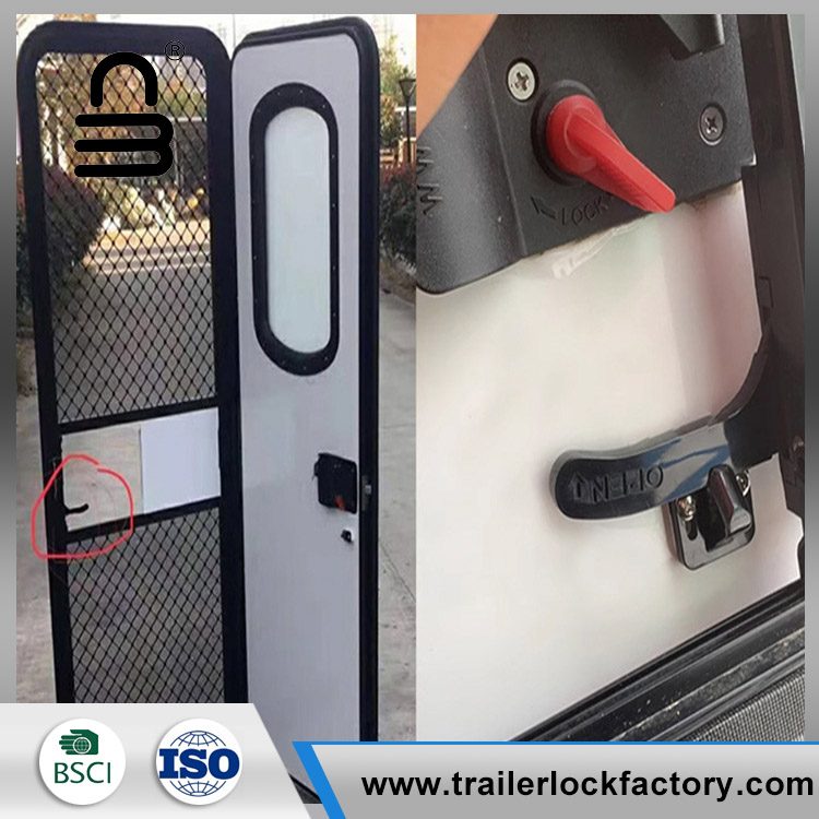 Srpski језик RV -dørhåndtak - vedtak av solide materialer med utførelse, camperskjermdørhåndtaket er holdbart for, RV -skjermdørhåndtak